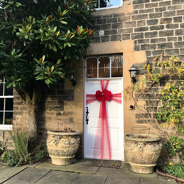 Облечете вратата си с нашите луксозни декорации с панделки. С панделка с дължина 750 см можете да оформите и да добавите красива празнична премяна на входната си врата. Независимо дали става въпрос за Коледа, сватба или бебешко парти, RUBYBOW подсилва празника.