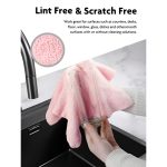 Меката микрофибърна тъкан осигурява перфектен, безследен блясък върху стъкло, плотове, мебели и други повърхности.