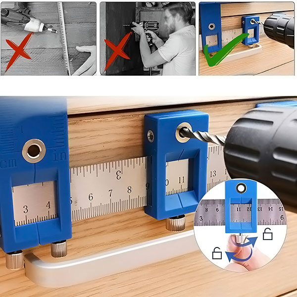 🛠️ Перфектно пробиване, всеки път! Улеснете „Направи си сам“ работата с нашия регулируем шаблон за центриране. Прецизно пробивайте дупки в дървени мебели и други, с бързо и точно центриране за всеки проект.