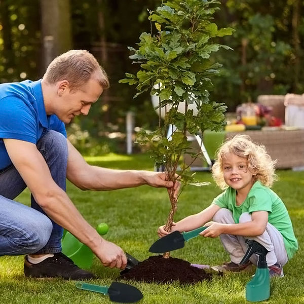 Този комплект градински инструменти съдържа всичко, което ви е необходимо за засаждане на нови цветя и растения, както и за поддържане на градината ви в добро състояние. Комплектът включва нокът/гребло за плевене и две лапатки за растения с различни размери, което прави лесно и удобно засаждането и поддържането на всички видове растения.