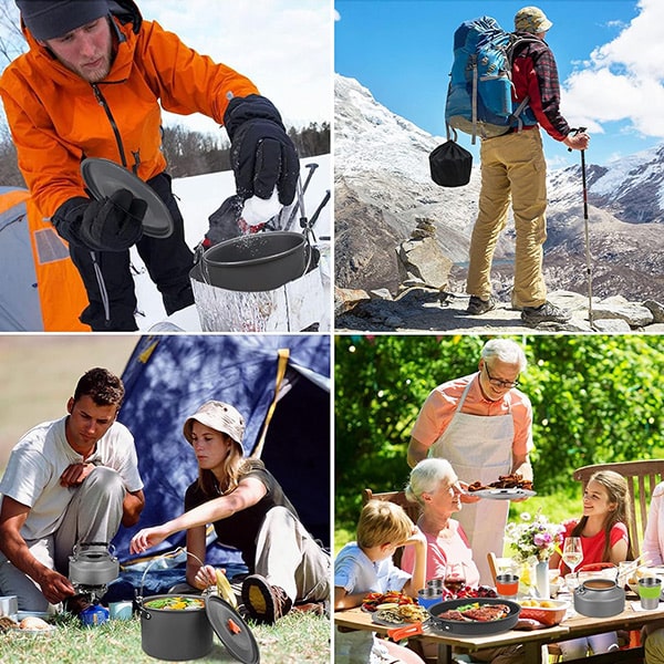 Гответе навсякъде с този универсален, компактен и лек комплект съдове за готвене, идеален за дома, пътувания и приключения на открито.