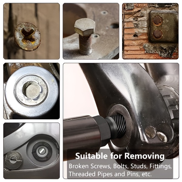 Дизайнът с лява спирала осигурява максимално захващане, като се затяга стабилно при завъртане за ефективно и прецизно премахване на болтове.
