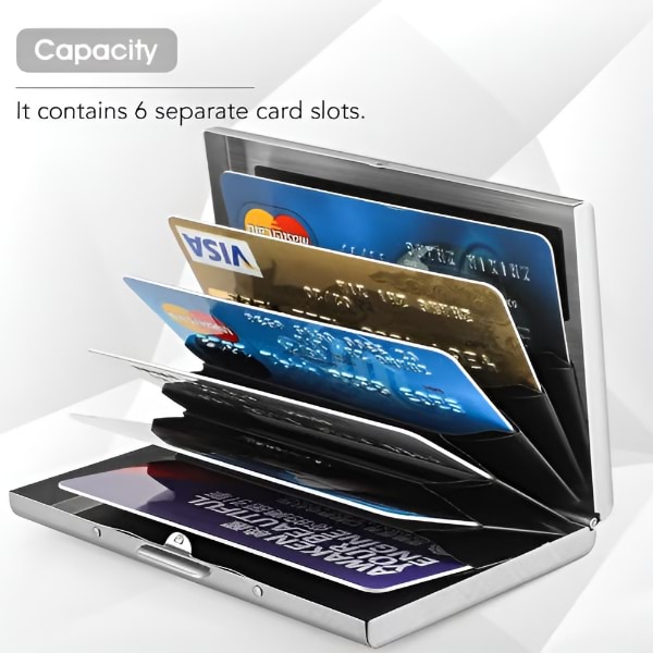 Изработен от висококачествена неръждаема стомана, този портфейл е по-издръжлив и дълготраен от пластмасовите или алуминиевите варианти, като предлага превъзходна защита за вашите карти.