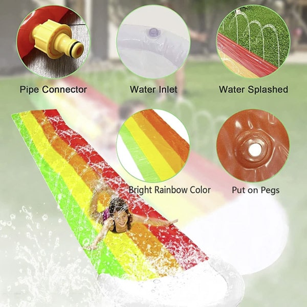 Прекарайте чудесно време на открито с надуваемата водна пързалка с разпръскваща система! Хлъзгавата повърхност позволява бързо плъзгане, а системата за разпръскване поддържа хлъзгавостта на пързалката и добавя вълнение. Подходяща е както за деца, така и за възрастни!