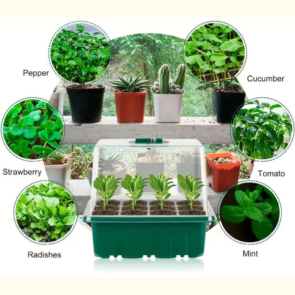 Всяка тава има 12 дупки и капак с превключвател за вентилация. Сега можете да контролирате нивата на влажност и да осигурите най-добрата среда за вашите разсади. Отглеждайте здрави, добре аерирани корени за по-силни растения.